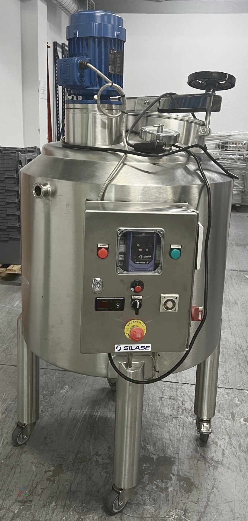 Descriptif : état NEUF – non utilisé. Cuve d’agitation, cuve à agitation. Double parois (double peau) mélangeur avec agitateur 3 lames ; Poste de commande avec variateur électrique …