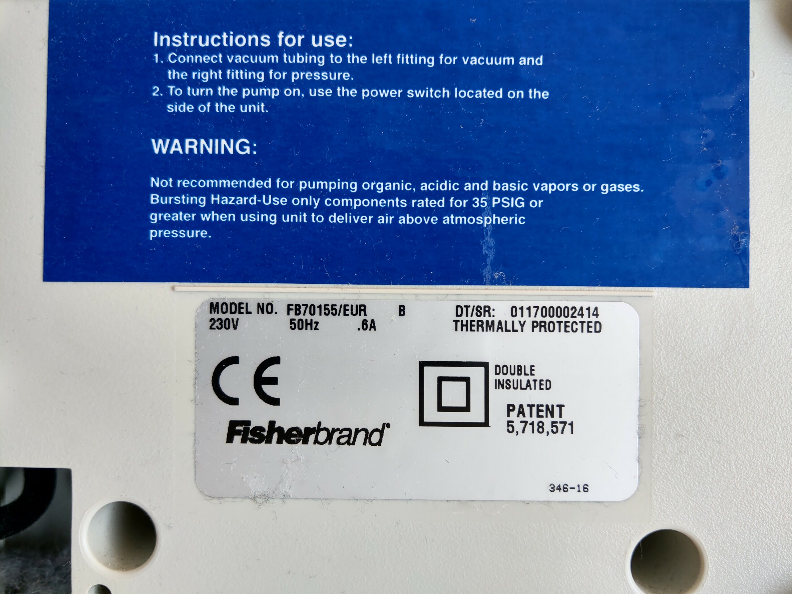 Pompe à vide Fabricant : Thermofischer Modèle : FB70155 Dimensions hors-tout (l x p x h) : 220 x 250 x 130 mm Incoterm : FCA